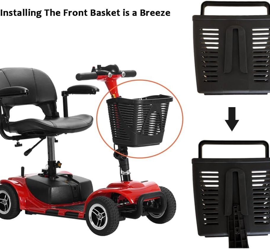Front Basket Assembly for 3 & 4 Mobility Scooters, Easy Mount Storage Accessory